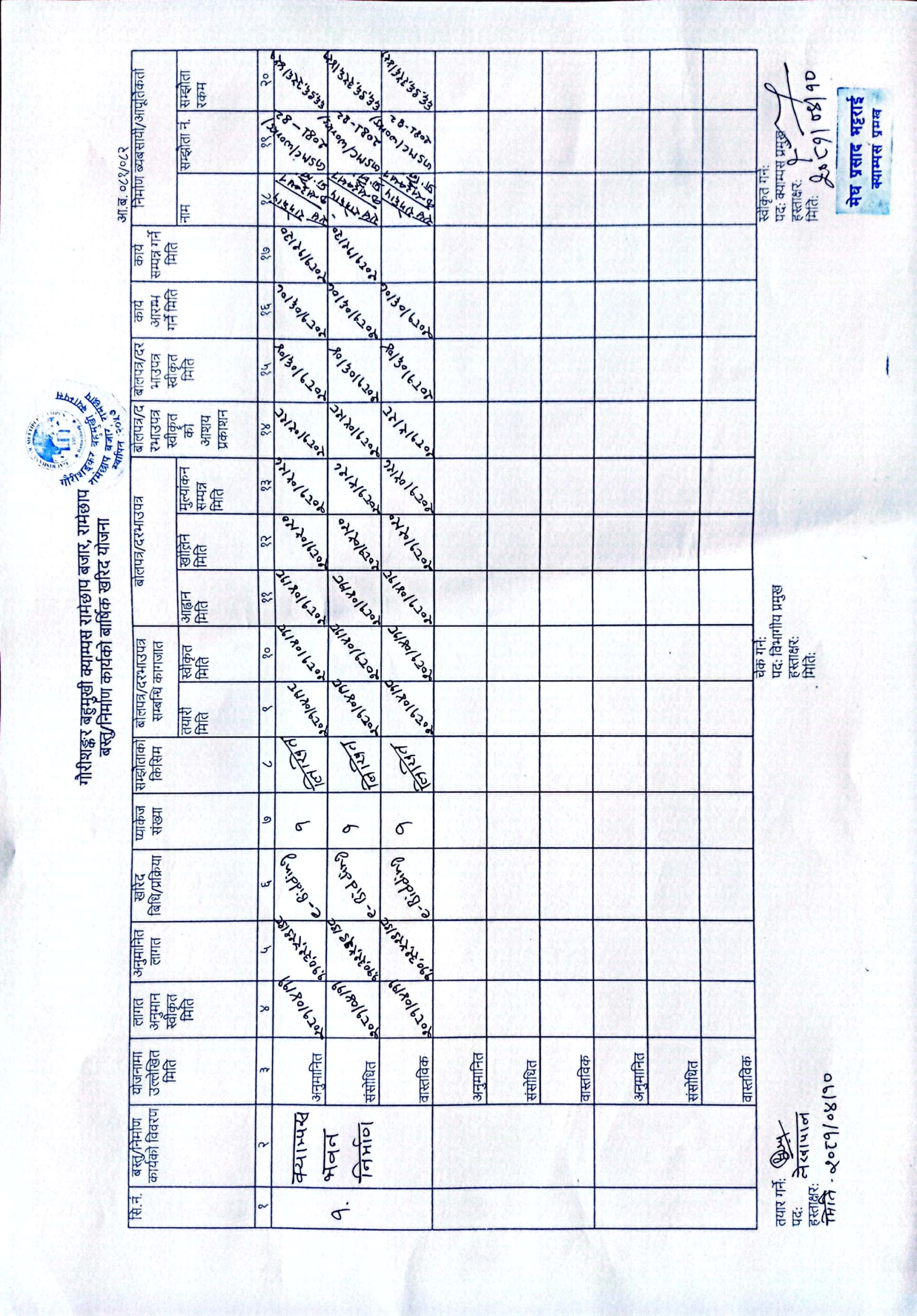 निर्माण कार्यकाे बार्षिक खरिद याेजना